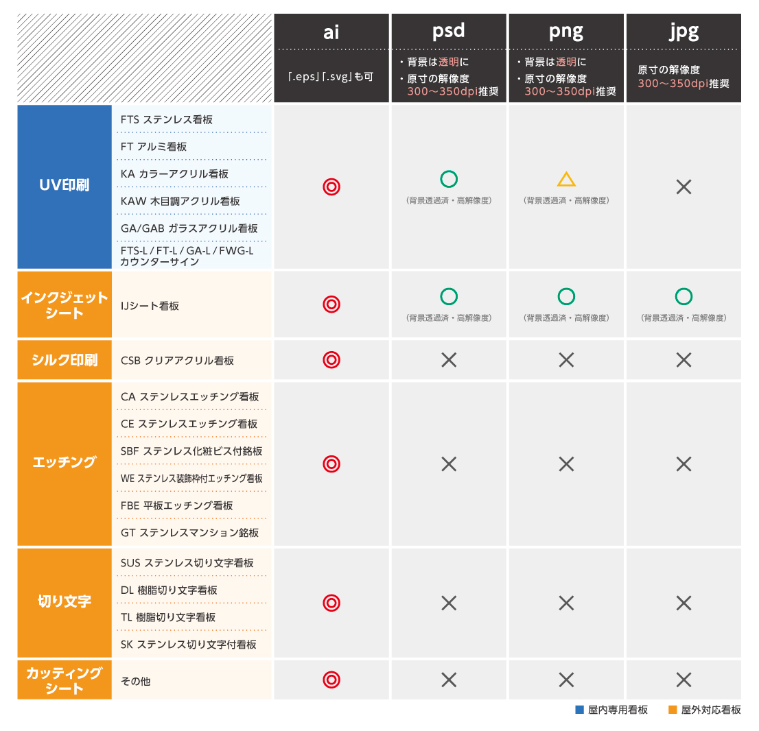 「psdデータ」と「png画像」は、UV印刷やインクジェットシートの看板には使用できるファイル形式です。